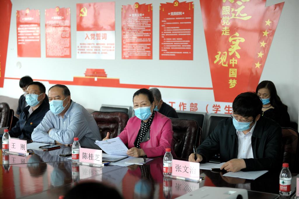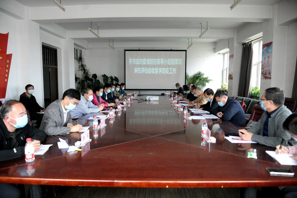 在學(xué)校辦公樓516會(huì)議室,評(píng)估驗(yàn)收組聽取了我校黨委書記、校長、校疫情防控工作領(lǐng)導(dǎo)小組組長陳桂芝關(guān)于學(xué)校完善復(fù)學(xué)準(zhǔn)備各項(xiàng)工作方案,進(jìn)一步做好疫情常態(tài)化、精準(zhǔn)化防控相關(guān)工作的介紹。
