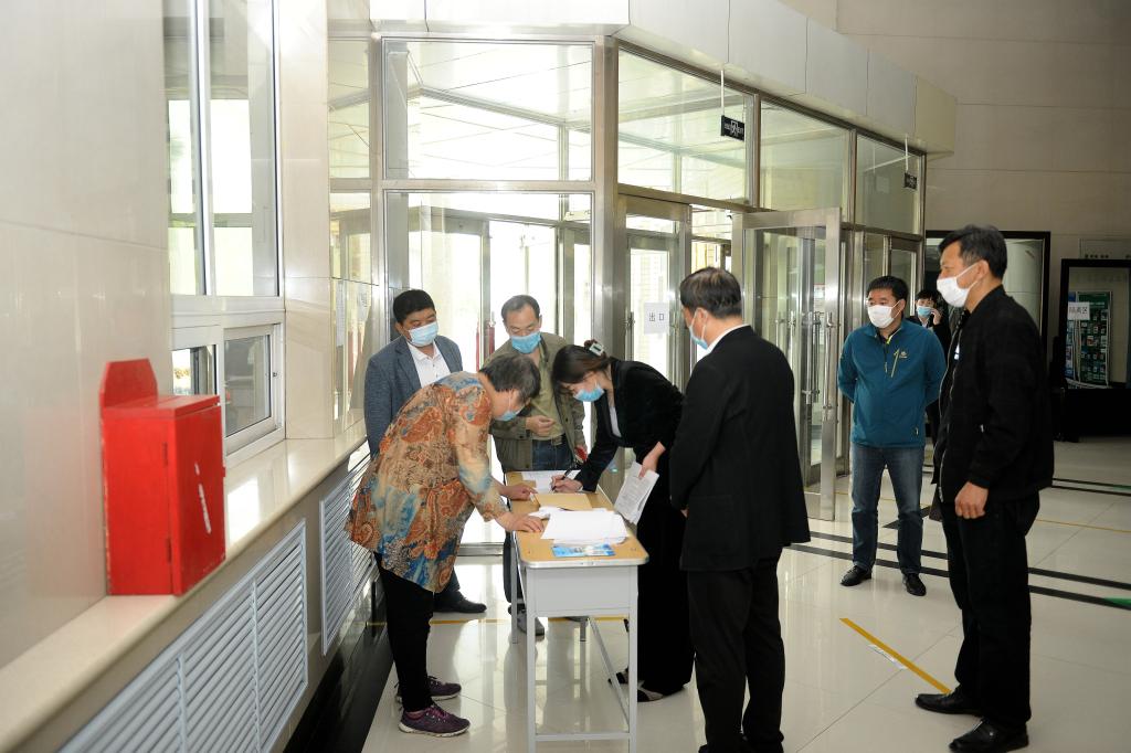 聽取匯報(bào)后,評(píng)估驗(yàn)收組成員分為三組,分別實(shí)地查看了學(xué)校衛(wèi)生所、德潤大廈和林校校區(qū)學(xué)生食堂、食品與生物工程學(xué)院實(shí)驗(yàn)室、培訓(xùn)中心隔離區(qū)等復(fù)學(xué)防疫重點(diǎn)場(chǎng)所,實(shí)地查看了我校防控工作相關(guān)材料,詳細(xì)查看了各項(xiàng)防控措施落實(shí)情況,并詢問了相關(guān)工作人員業(yè)務(wù)流程。