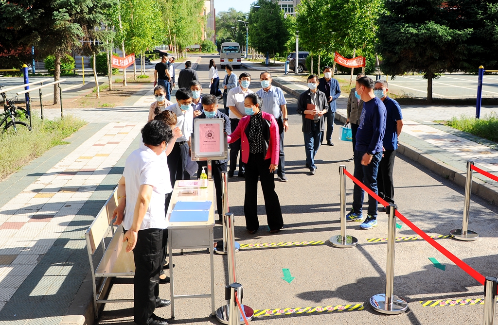 為扎實(shí)做好學(xué)生返校復(fù)課各項(xiàng)準(zhǔn)備工作,提高各單位疫情防控和應(yīng)急處置能力,6月5日下午,校領(lǐng)導(dǎo)陳桂芝、齊宏偉、張文治、王剛、李英杰、姜國(guó)慶、張樹軍、陶佰睿帶隊(duì)檢查指導(dǎo)返校復(fù)課準(zhǔn)備工作,并對(duì)學(xué)生食堂就餐、公寓入住、實(shí)驗(yàn)室實(shí)驗(yàn)等場(chǎng)景進(jìn)行模擬演練。