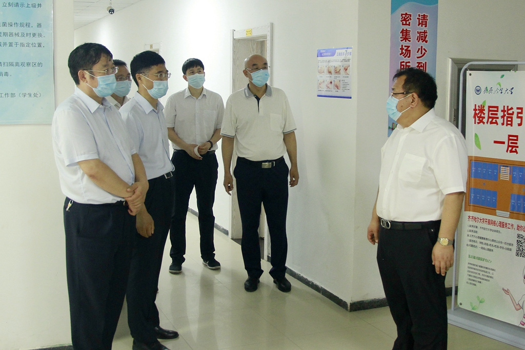 為進(jìn)一步做好校園疫情防控工作,7月6日下午,校長(zhǎng)董玉庭在相關(guān)校領(lǐng)導(dǎo)及相關(guān)部門負(fù)責(zé)人陪同下深入學(xué)??挂咭痪€,對(duì)學(xué)校常態(tài)化疫情防控工作開展情況進(jìn)行了調(diào)研指導(dǎo)。