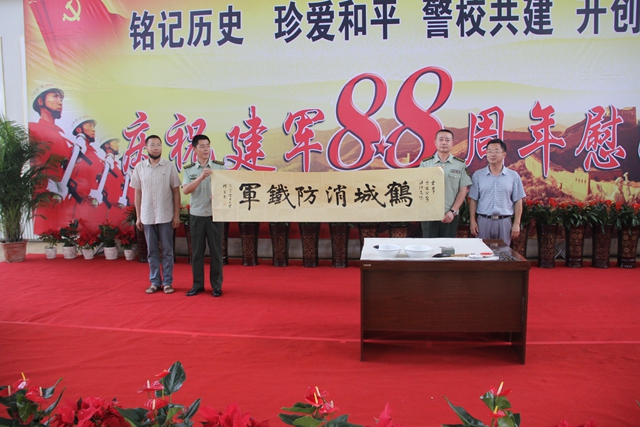 校黨委書記李海紅、黨委副書記蓋元臣代表學(xué)校向部隊官兵致以節(jié)日的熱烈的祝賀,送上節(jié)日的祝福,并對部隊一直以來對齊齊哈爾大學(xué)建設(shè)和發(fā)展給予的大力支持與幫助表示深深地感謝。他們表示,安全保障重于泰山,平安和諧關(guān)乎發(fā)展。多年來,筑齊部隊官兵對學(xué)校安全保障、武裝軍訓(xùn)以及平安和諧校園建設(shè)等方方面面給予高度重視和全力支持。軍校、警校攜手共建,取得了豐碩成果,結(jié)下了深厚友誼。我們相信,在雙方的共同努力下,不斷鞏固發(fā)展堅如磐石的軍校關(guān)系,深入實施軍民融合發(fā)展戰(zhàn)略,推動強軍目標在基層落地生根,進一步實現(xiàn)優(yōu)勢互補、互助互惠、和諧發(fā)展、共創(chuàng)輝煌,使軍校共建,警校共建結(jié)出更豐碩的成果,為實現(xiàn)中國夢強軍夢凝聚強大力量。