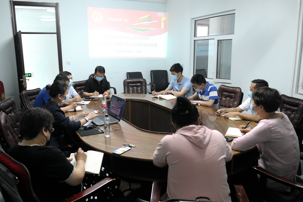 7月9日下午,校黨委副書(shū)記齊宏偉為所在宣傳部-統(tǒng)戰(zhàn)部聯(lián)合黨支部全體黨員講題為《彰顯中國(guó)特色社會(huì)主義制度優(yōu)勢(shì)全力保障人民群眾生命安全和身體健康》的專(zhuān)題黨課。她重點(diǎn)圍繞習(xí)近平總書(shū)記關(guān)于疫情防控重要講話(huà)和指示批示精神,結(jié)合個(gè)人自學(xué)和所思所想及切身感受,從“抗疫斗爭(zhēng)充分彰顯了中國(guó)特色社會(huì)主義的制度優(yōu)勢(shì)”、“讓黨旗在防控疫情斗爭(zhēng)一線(xiàn)高高飄揚(yáng)”、“助力全球抗疫推動(dòng)人類(lèi)命運(yùn)共同體的責(zé)任擔(dān)當(dāng)”等三個(gè)層面進(jìn)行了深入闡述。她指出,面對(duì)突如其來(lái)的疫情,以習(xí)近平同志為核心的黨中央,總攬全局、協(xié)調(diào)各方,科學(xué)防治、精準(zhǔn)施策,把人民群眾生命安全和身體健康放在第一位,團(tuán)結(jié)帶領(lǐng)全黨全軍全國(guó)各族人民萬(wàn)眾一心,眾志成城,全力打贏疫情防控的人民戰(zhàn)爭(zhēng),取得了重大戰(zhàn)略成果。我們要深刻學(xué)習(xí)領(lǐng)會(huì)、認(rèn)真踐行習(xí)近平總書(shū)記關(guān)于疫情防控重要講話(huà)和指示批示精神,為實(shí)現(xiàn)打贏疫情防控阻擊戰(zhàn)和學(xué)校事業(yè)高質(zhì)量發(fā)展雙勝利當(dāng)先鋒、做貢獻(xiàn)。