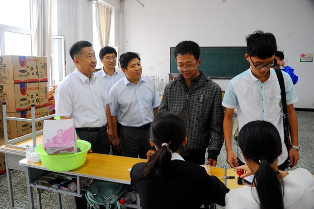 8月29日,從早晨6:00直至18:00,校黨委書記李海紅,校長(zhǎng)馬立群,常務(wù)副校長(zhǎng)鄭喜群等校領(lǐng)導(dǎo)分別深入到火車站和東、中、西區(qū)迎新接待點(diǎn)、學(xué)生寢室看望入學(xué)報(bào)到的2015級(jí)新生及其家長(zhǎng),檢查指導(dǎo)迎新工作,把關(guān)愛(ài)與溫暖傳達(dá)給剛剛?cè)雽W(xué)報(bào)到的新生和家長(zhǎng)。