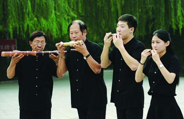路文明教授與路文漢客座教授在2015中國國際音樂文化節(jié)上用他們發(fā)明的丁笛演奏