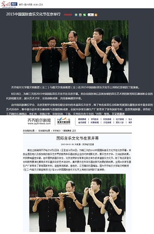 8月18日,為期三天的2015中國國際音樂文化節(jié)在北京開幕。來自全國各地以及新加坡的音樂藝術(shù)界的新秀和樂器創(chuàng)新企業(yè)的代表相聚北京,展示藝術(shù)才華,交流創(chuàng)新成果,共同奏響盛世華章。