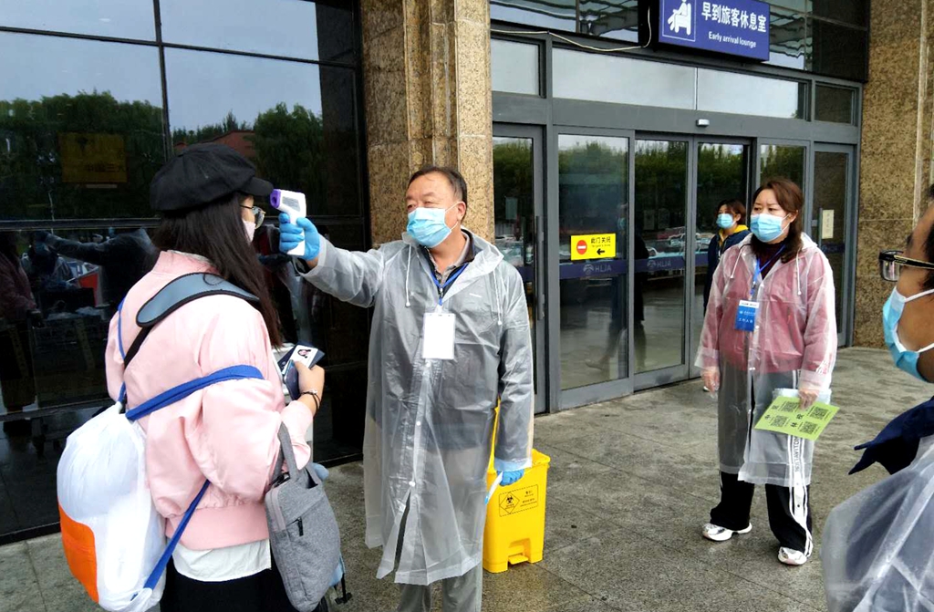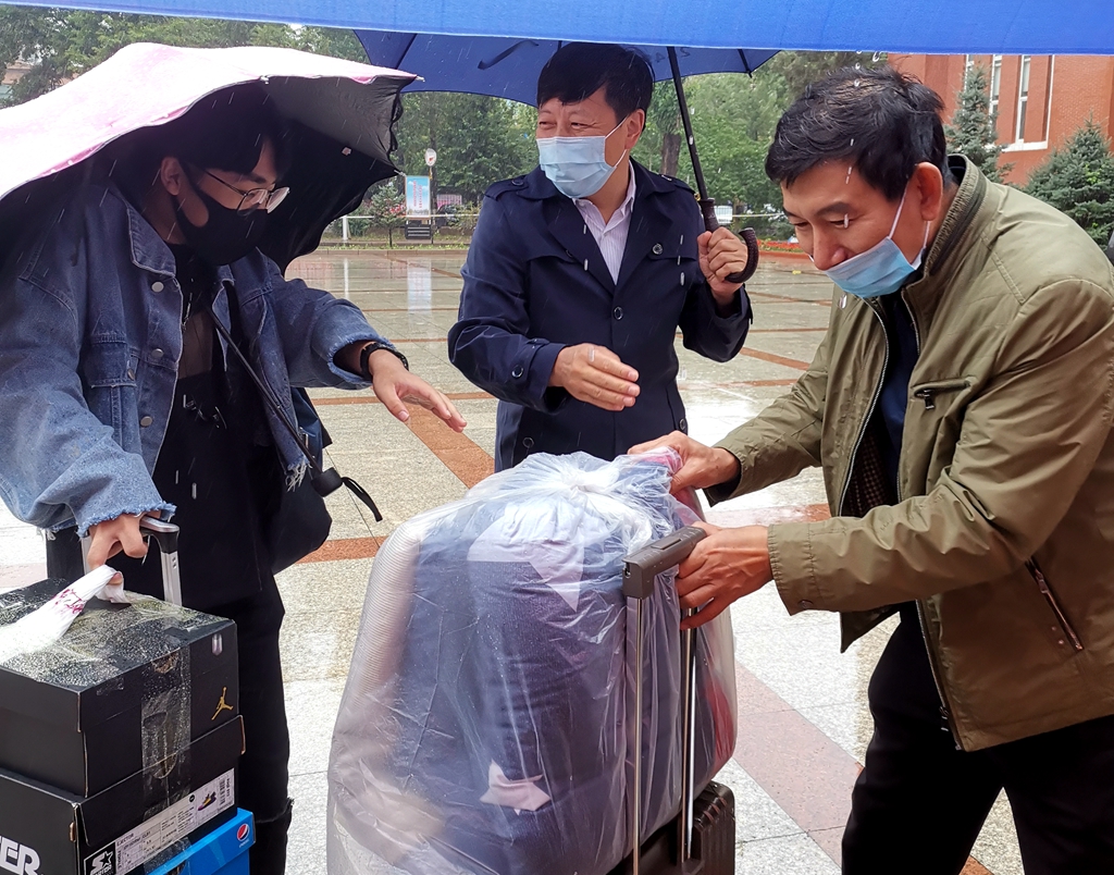 29日6:30,62位負(fù)責(zé)接站工作的工作人員和教師志愿者頂著綿綿細(xì)雨集合前往各接站點(diǎn),迎接返校學(xué)生,引導(dǎo)同學(xué)們掃碼,拿著體溫檢測儀耐心給每位同學(xué)測量體溫,并對行李進(jìn)行消毒。他們不分晝夜,全天候迎接返校同學(xué),接完返校首日的最后一班車和航班的60余名同學(xué)時已是30日凌晨。返校途中實(shí)行閉環(huán)管理,有專門的班車送同學(xué)們回到中區(qū)、東區(qū)報到和做核酸檢測采樣。對于20:00后返校的同學(xué),學(xué)校專門安排他們在學(xué)校培訓(xùn)中心住宿,并為他們準(zhǔn)備好次日的早餐,第二天清晨再由專人專車把他們送到所在學(xué)院報到點(diǎn)。