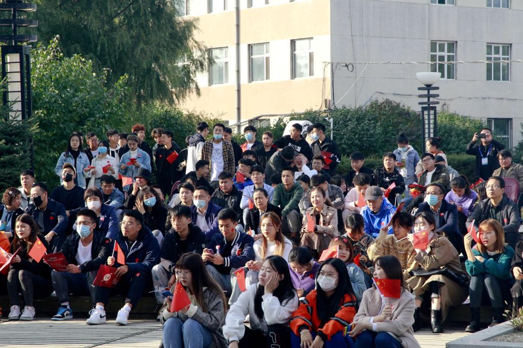 校黨委書記陳桂芝、黨委副書記齊宏偉、校工會(huì)主席陶佰睿與現(xiàn)場三百余名師生共同欣賞了為偉大祖國71華誕獻(xiàn)禮的精彩演出。