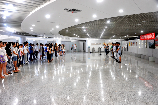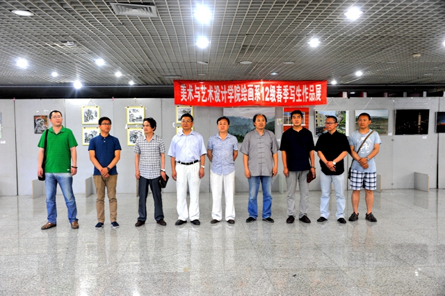 畫展開始前,美術(shù)與藝術(shù)設(shè)計(jì)學(xué)院舉辦了簡(jiǎn)短的揭幕儀式。繪畫系主任張充呂教授在儀式上致辭。張充呂教授說,每年的春季寫生活動(dòng)是繪畫系各專業(yè)舉行的專業(yè)性很強(qiáng)、涉足地域很廣的山水、風(fēng)景寫生以及藝術(shù)考察實(shí)踐活動(dòng)。學(xué)校和學(xué)院領(lǐng)導(dǎo)都高度重視此項(xiàng)工作。今年的寫生考察活動(dòng)來到我國(guó)獨(dú)具景觀和藝術(shù)特點(diǎn)的張家界、景德鎮(zhèn)等地。師生們克服了氣候差異、舟車勞頓等困難,早出晚歸,在綿綿小雨和炎炎烈日下,辛勤采擷大自然的鬼斧神功、鐘靈毓秀,為大家的藝術(shù)創(chuàng)作積累了豐富的素材,經(jīng)歷了難能可貴的藝術(shù)實(shí)踐與鍛煉。希望同學(xué)們?cè)谖磥淼乃囆g(shù)道路上,堅(jiān)持藝術(shù)來源于生活、來源于自然界的正確道路,不斷努力,取得更好的成績(jī)。