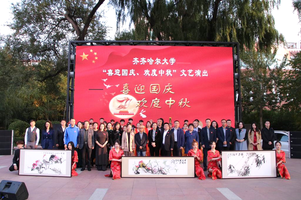 9月30日下午,學校在三致廣場隆重舉行齊齊哈爾大學2020年“喜迎國慶、歡度中秋”文藝演出,揭開了“國慶、中秋”期間校園文化節(jié)系列活動的序幕。校黨委書記陳桂芝、黨委副書記齊宏偉、校工會主席陶佰睿與現(xiàn)場三百余名師生共同欣賞了為偉大祖國71華誕獻禮的精彩演出。本次演出由校黨委宣傳部主辦,音樂與舞蹈學院、美術與藝術設計學院承辦,匯集了演唱、舞蹈、服裝設計展演、書畫創(chuàng)作表演、器樂演奏等多種形式,參演師生通過精心準備的節(jié)目,以青春的旋律喜迎中秋,以愛國的詩篇祝福祖國,深情謳歌了偉大祖國走向復興之路的風雨歷程,盡情抒發(fā)了我校廣大師生對美好生活的向往和追求,為偉大祖國71歲華誕獻上了最美好的祝福。