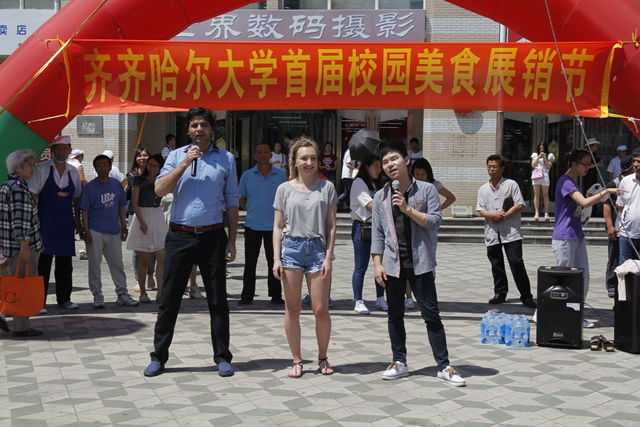 來自俄羅斯的留學(xué)生熱妮婭,韓國(guó)的留學(xué)生金成大,巴基斯坦的留學(xué)生伊沙克等人攜手演繹的“留學(xué)生版《寧都啦》” 讓人們的味覺、聽覺、視覺盡享新鮮,將首屆校園美食展銷節(jié)活動(dòng)推向了高潮。