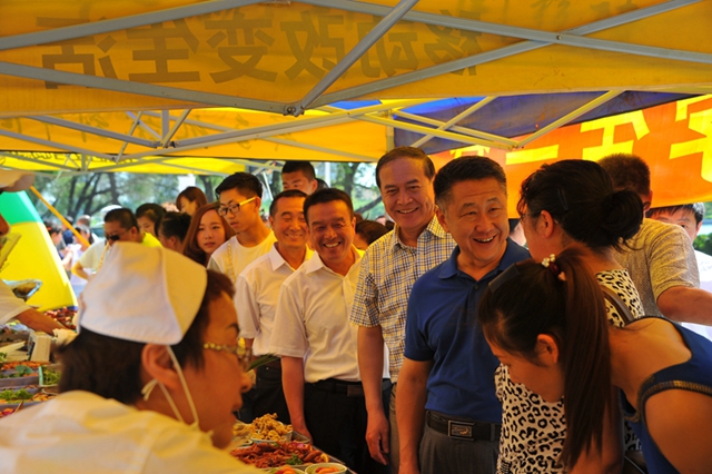 校黨委書記李海紅,校長(zhǎng)馬立群,校黨委常委、紀(jì)委書記張學(xué)軍,校黨委常委、副校長(zhǎng)王剛,校黨委常委、工會(huì)主席李敏義出席活動(dòng)并與師生親切交流。后勤黨委書記、處長(zhǎng)尹鷗,后勤處副處長(zhǎng)韓士華、楊慶忠、杜立群以及有關(guān)職能部門的領(lǐng)導(dǎo)參加了美食節(jié)活動(dòng),近萬(wàn)名師生和部分市民參觀、選購(gòu)、品嘗大學(xué)校園美食,體驗(yàn)大學(xué)餐飲文化,暢享校園美食盛宴。