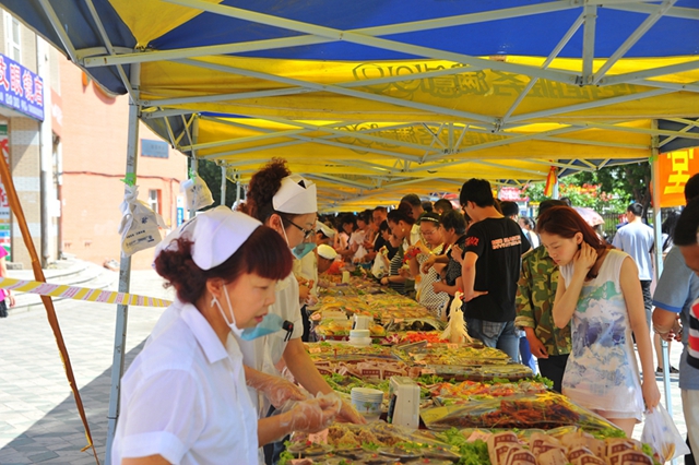 首屆校園美食展銷節(jié)由后勤處主辦,以安全、健康、低碳、環(huán)保、節(jié)約為理念。美食節(jié)現(xiàn)場(chǎng),“和諧后勤奮勇爭(zhēng)先 展示精品服務(wù)師生”、“弘揚(yáng)中華飲食文化 倡導(dǎo)文明健康飲食”、“依法保障食品安全 營(yíng)造放心飲食環(huán)境”、“培訓(xùn)中心餐廳祝美食展銷節(jié)圓滿成功”等條幅標(biāo)語(yǔ)鮮明、分外醒目。