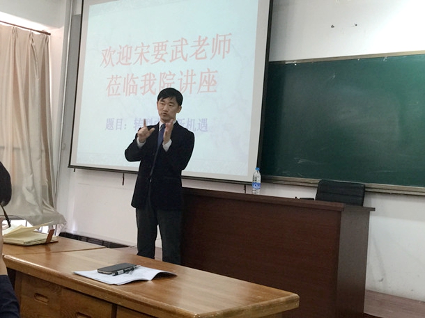 4月27日上午,應(yīng)我校經(jīng)濟(jì)與管理學(xué)院邀請,黑龍江科技大學(xué)管理學(xué)宋要武博士在中主(11教)405教室做了題為《轉(zhuǎn)型中的新機(jī)遇》的專題講座。我校經(jīng)濟(jì)與管理學(xué)院院長王維、副院長王成與全院教師和研究生聆聽了講座。