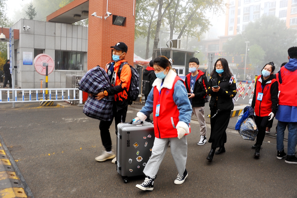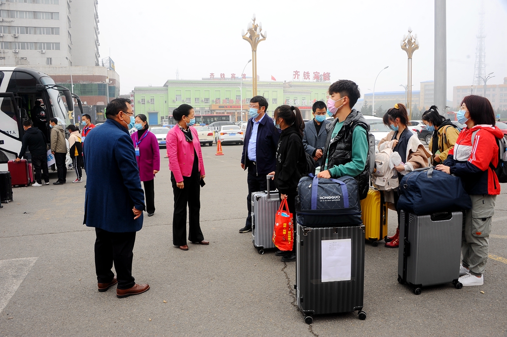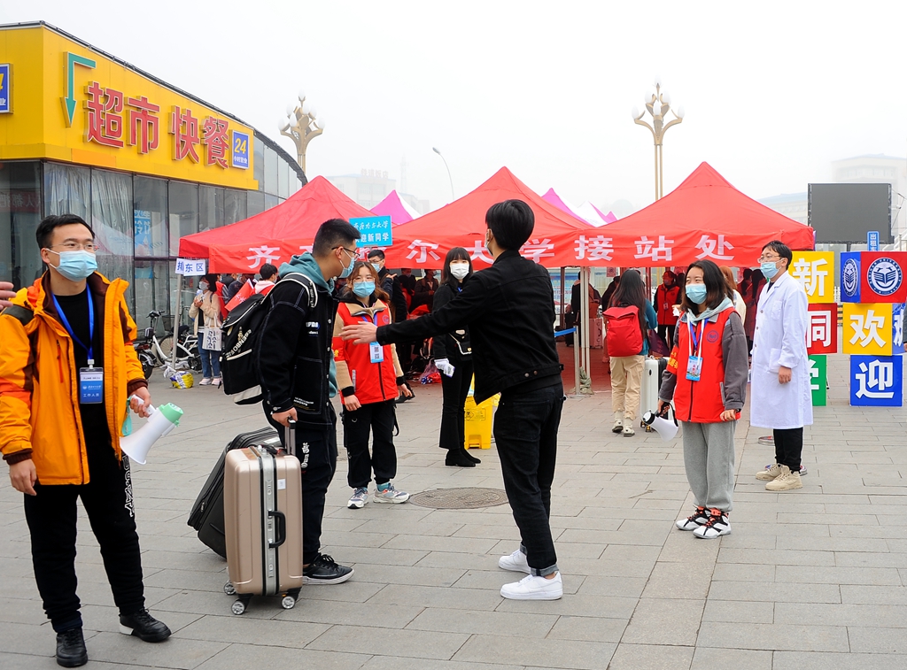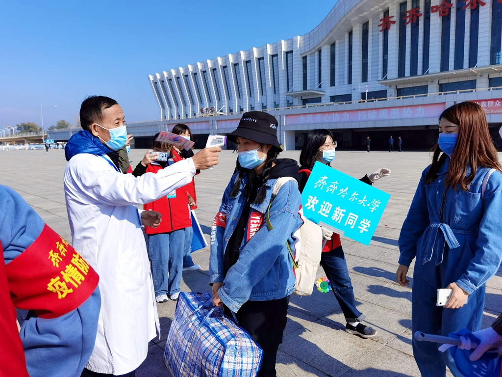 學(xué)校在齊齊哈爾火車站、齊齊哈爾火車南站、三百客運樞紐站、站前長途客運站和齊齊哈爾機場組織了集中接站,現(xiàn)場工作的有關(guān)領(lǐng)導(dǎo)、老師、學(xué)生志愿者們打著引導(dǎo)牌、揮舞著旗幟,積極有序地迎接剛剛走下火車的新生同學(xué)及家長,組織大家及時坐上接站班車,順利抵達(dá)學(xué)校。學(xué)生和家長出站后嚴(yán)格執(zhí)行“戴口罩、測溫、掃碼”措施,通過“通信大數(shù)據(jù)行程卡”核查行動軌跡,無異常情況的同學(xué)集體乘車到校直接進(jìn)入校園;家長由學(xué)校專門安排的專車接送到校,為保障校園防疫安全,彌補新生家長不能進(jìn)入校園的遺憾,學(xué)校為新生家長準(zhǔn)備了專門的校園觀光車,讓家長在車內(nèi)瀏覽校園。