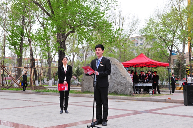 “五四”升旗儀式由校團(tuán)委副書記蘇醒主持。