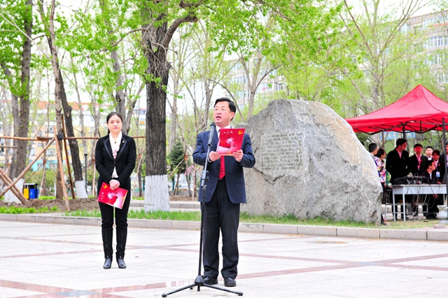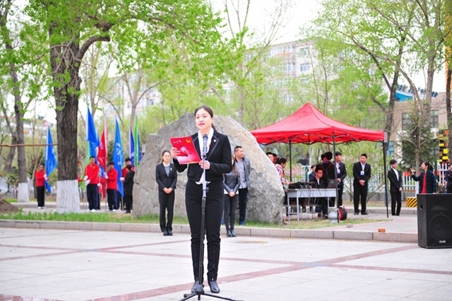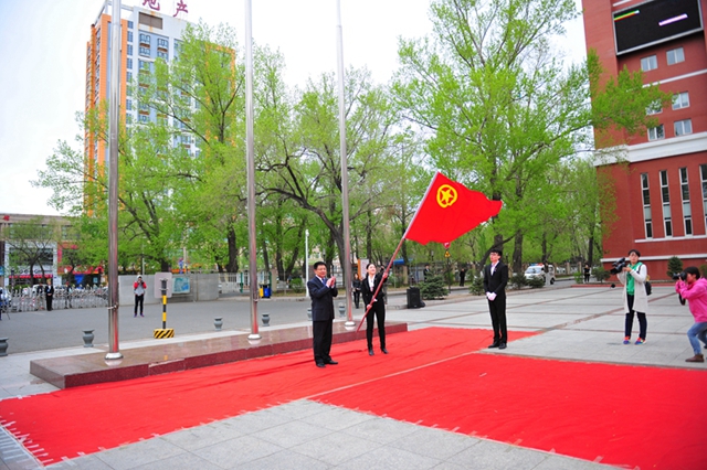 校黨委書記李海紅將團(tuán)旗交付給校團(tuán)委副書記蘇醒。校團(tuán)委副書記蘇醒代表團(tuán)員青年高擎火紅團(tuán)旗,向全場揮旗致意,表達(dá)廣大青年團(tuán)員堅(jiān)定跟黨走、共筑偉大“中國夢”堅(jiān)定信心和堅(jiān)強(qiáng)決心。承載著光榮與夢想的火紅團(tuán)旗迎風(fēng)飄揚(yáng),凝聚著齊大學(xué)子夢想的五月鮮花在團(tuán)旗下璀璨綻放。