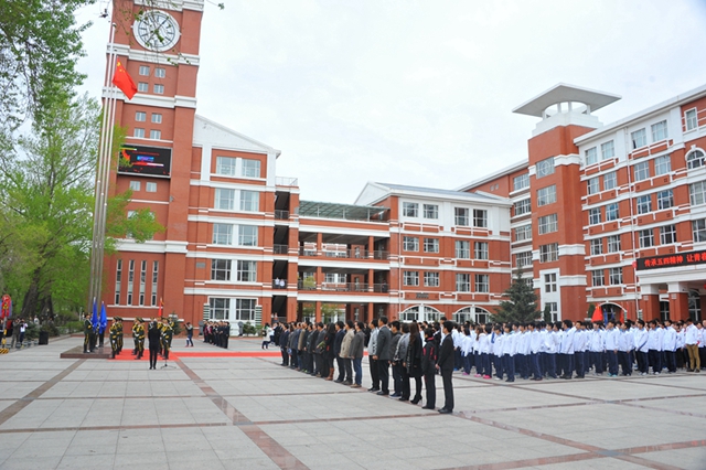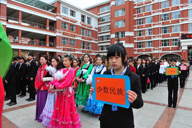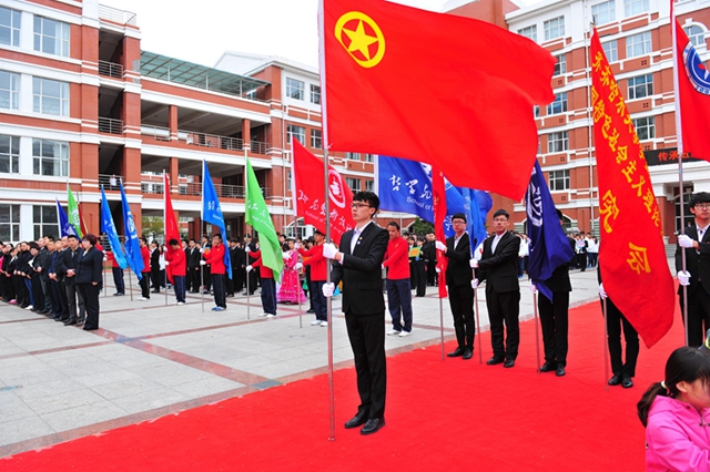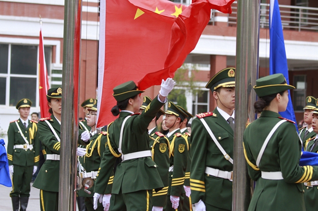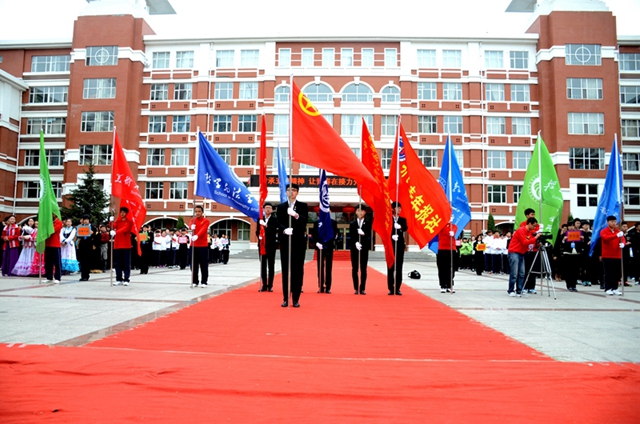 校黨委書記李海紅、校黨委副書記蓋元臣出席升旗儀式;各學(xué)院主管學(xué)生工作的黨委書記、黨委副書記、副院長、團(tuán)委書記、學(xué)生代表,各級學(xué)生組織代表,以及少數(shù)民族學(xué)生代表近千人參加了此次升旗儀式。