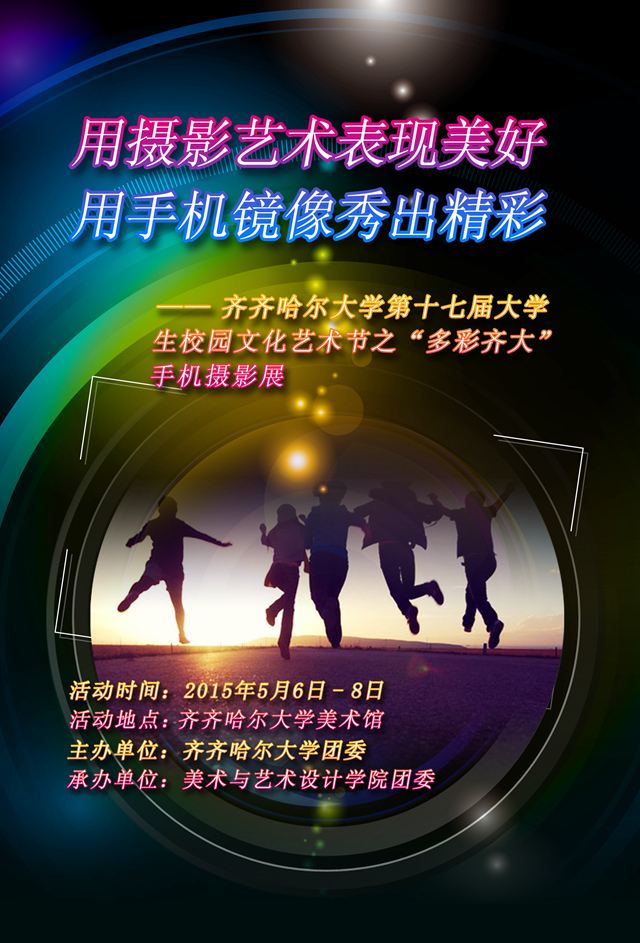 齊齊哈爾大學(xué)第十七屆大學(xué)生校園文化藝術(shù)節(jié)以“我的中國(guó)夢(mèng)-青春夢(mèng)想 藝術(shù)綻放”為主題,在5月6日至6月10日活動(dòng)期間,校級(jí)、院級(jí)和學(xué)生社團(tuán)三個(gè)層面將分別組織開展豐富多彩的校園文化藝術(shù)活動(dòng),以發(fā)掘?qū)W生潛力,發(fā)揮個(gè)性特長(zhǎng),陶冶學(xué)生情操,提高審美情趣,為青年學(xué)生展現(xiàn)青春風(fēng)采和精神風(fēng)貌提供廣闊舞臺(tái)。