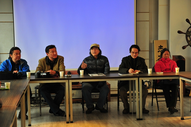 我院美術(shù)教師及部分美術(shù)學(xué)研究生聆聽了閆振鐸先生的美術(shù)創(chuàng)作指導(dǎo)。閆先生首先作了美術(shù)創(chuàng)作的主旨演講,他從北大荒版畫談起,滿懷激情地回顧了10萬(wàn)轉(zhuǎn)業(yè)大軍奔赴北大荒開荒創(chuàng)業(yè)的光輝歷史,深入剖析了北大荒版畫產(chǎn)生的歷史原因,以及在國(guó)內(nèi)外所產(chǎn)生的廣泛影響。從歷史觀照現(xiàn)代,從中提出了深髓的美術(shù)創(chuàng)作觀點(diǎn)。他說(shuō):“作為藝術(shù)家,要與國(guó)家同呼吸共命運(yùn),要深入到現(xiàn)實(shí)生活中,與那些擔(dān)負(fù)共和國(guó)建設(shè)與發(fā)展重任的各行各業(yè)群眾親密接觸,了解他們的所思所想和所為,從中汲取創(chuàng)作營(yíng)養(yǎng),碰撞出創(chuàng)作火花,滿懷激情地去表現(xiàn)他們,進(jìn)而實(shí)現(xiàn)藝術(shù)家的自我價(jià)值和社會(huì)價(jià)值。黑龍江具有我國(guó)實(shí)現(xiàn)農(nóng)業(yè)現(xiàn)代化最優(yōu)越的條件,肥沃的黑土地,遼闊的大草原,大農(nóng)業(yè)的機(jī)械化,樸實(shí)、勤勞、粗獷、幽默的東北人……。這些都是黑龍江獨(dú)有的特色,是我們美術(shù)創(chuàng)作的根基和源泉,希望師生們能夠進(jìn)入他們的生活,體驗(yàn)他們的喜怒哀樂(lè),用手中的畫筆真情實(shí)感地表現(xiàn)他們,刻畫出人物的精氣神,奏出時(shí)代的最強(qiáng)音?!?
