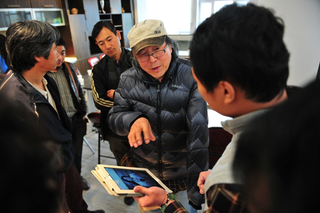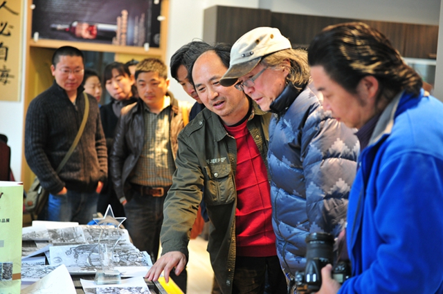 閆振鐸先生主旨演講之后,觀看了美術(shù)與藝術(shù)設(shè)計(jì)學(xué)院部分教師創(chuàng)作的美術(shù)作品,并一一進(jìn)行了指導(dǎo),提出了許多衷肯且十分有價(jià)值的意見。