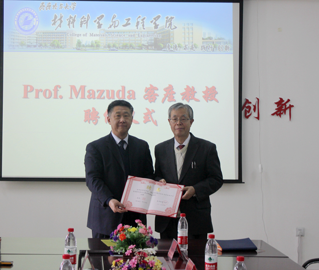 為更好地促進(jìn)京都大學(xué)與齊齊哈爾大學(xué)在科學(xué)研究上的交流與合作,進(jìn)一步拓寬我校師生科學(xué)研究的國際視野,引進(jìn)智力資源,加強(qiáng)人才隊(duì)伍建設(shè),齊齊哈爾大學(xué)科技處、材料科學(xué)與工程學(xué)院聯(lián)合邀請(qǐng)京都大學(xué)增田俊夫教授來我進(jìn)行學(xué)術(shù)交流。