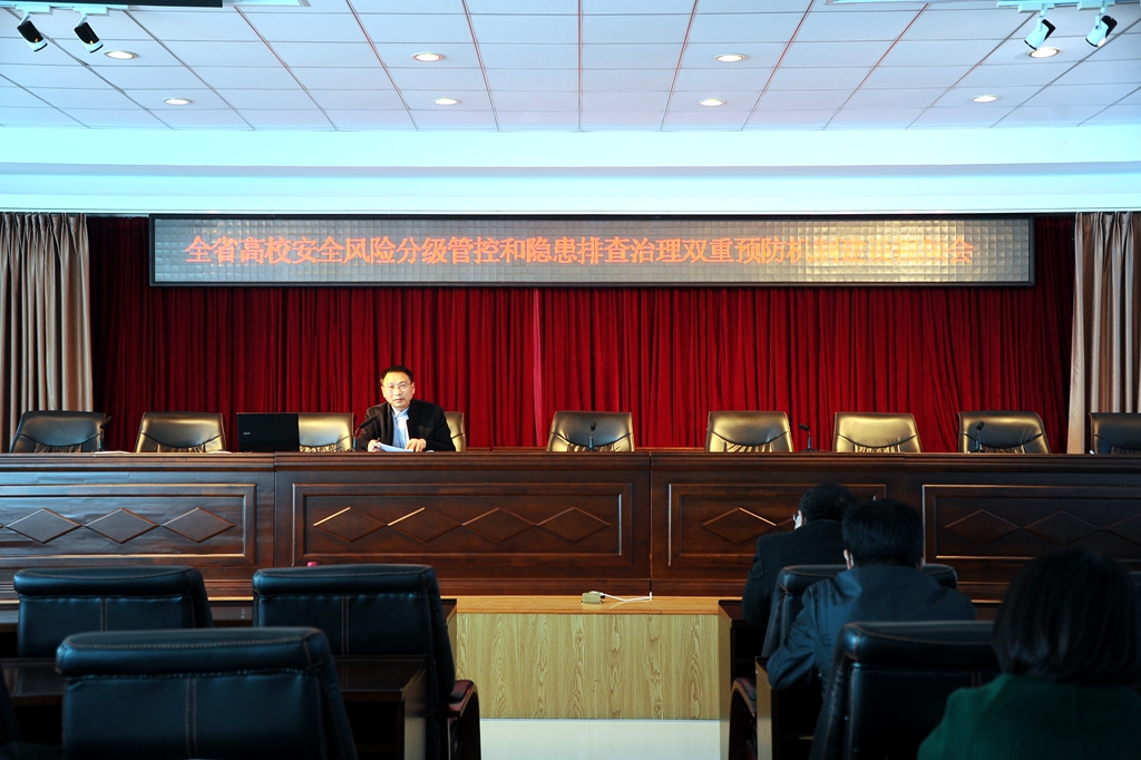 為進(jìn)一步推進(jìn)教育系統(tǒng)安全風(fēng)險(xiǎn)分級(jí)管控和隱患排查治理雙重預(yù)防機(jī)制建設(shè),促進(jìn)實(shí)施教育領(lǐng)域本質(zhì)安全水平提升工程,10月28日上午,省教育廳組織召開了全省高校安全風(fēng)險(xiǎn)分級(jí)管控和隱患排查治理雙重預(yù)防機(jī)制建設(shè)現(xiàn)場(chǎng)會(huì)。會(huì)議采取視頻會(huì)議線上、線下同步觀看的方式進(jìn)行,主會(huì)場(chǎng)設(shè)在黑龍江大學(xué),副省長(zhǎng)孫東生出席會(huì)議,省教育廳、省應(yīng)急管理廳相關(guān)負(fù)責(zé)人以及駐哈本科高校校長(zhǎng)及保衛(wèi)處負(fù)責(zé)人在主會(huì)場(chǎng)參加會(huì)議。駐哈本科高校分管副校長(zhǎng)及相關(guān)處室和院系負(fù)責(zé)人,其他高校校長(zhǎng)及分管校領(lǐng)導(dǎo)、相關(guān)處室及院系負(fù)責(zé)同志在本校分會(huì)場(chǎng)參會(huì)。會(huì)議由省教育廳廳長(zhǎng)趙國(guó)剛主持。