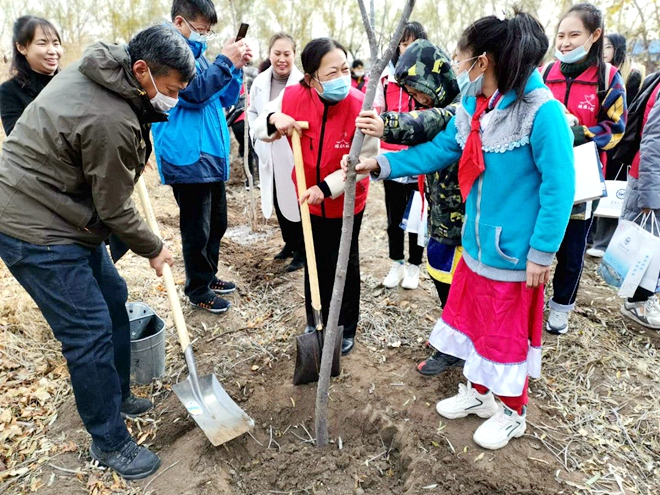 捐資助學(xué)儀式結(jié)束后,大家一同來(lái)到“鴻雁工程林”,共同種下了8棵紫葉桃李樹,這8棵紫葉桃李樹象征著愛(ài)與希望,寄寓著孩子們純真的夢(mèng)想,希望鼓勵(lì)哈拉達(dá)族小學(xué)的孩子們和紫葉桃李樹一道,在友愛(ài)的環(huán)境里茁壯健康成長(zhǎng)。