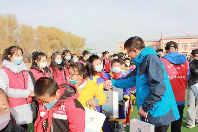 食品與生物工程學(xué)院黨委副書記馬金權(quán)講述了20年前牽手的小學(xué)生佟赟康結(jié)對(duì)的故事,鼓勵(lì)哈拉達(dá)族小學(xué)的孩子們要相信自己,為實(shí)現(xiàn)夢(mèng)想,而努力學(xué)習(xí),像佟赟康一樣,將來(lái)也上大學(xué),有更大的本領(lǐng)和能力,去幫助需要幫助的人。