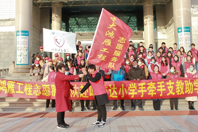 出征前,“鴻雁工程”志愿服務(wù)隊(duì)舉行了出征授旗儀式。校黨委副書記張文治出席授旗儀式,食品與生物工程學(xué)院部分師生、相關(guān)職能部門負(fù)責(zé)人,以及原食品與生物工程學(xué)院黨委書記楊淳、副書記趙振華參加了儀式。