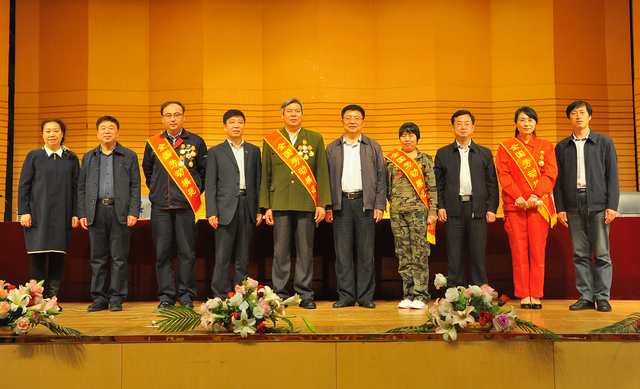 與會校領(lǐng)導(dǎo)與勞模事跡報告團(tuán)成員合影留念