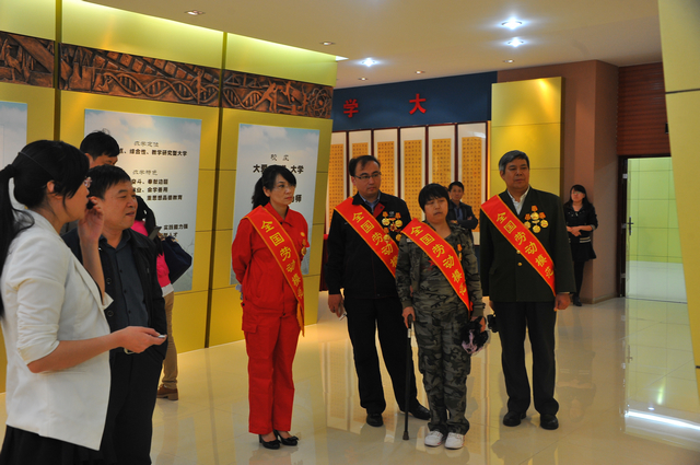 報告會結(jié)束后, 全國勞動模范秦世俊、朱彩芹、孟廣彬、楊海波等參觀了我校校史館。