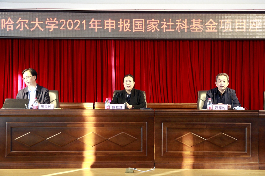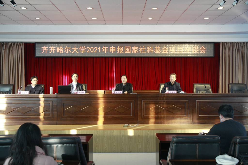 12月1日上午,學(xué)校在林校區(qū)求實(shí)樓五樓會議室召開2021年申報國家社科基金項(xiàng)目座談會。省委宣傳部二級巡視員、省哲學(xué)社會科學(xué)辦公室主任周美勝,黑龍江大學(xué)原副校長丁立群教授,校黨委書記陳桂芝,副校長呂厚均出席會議,科研處及各相關(guān)學(xué)院申報國家社科基金的教師、博士及青年骨干教師參加座談會。會議由陳桂芝主持。