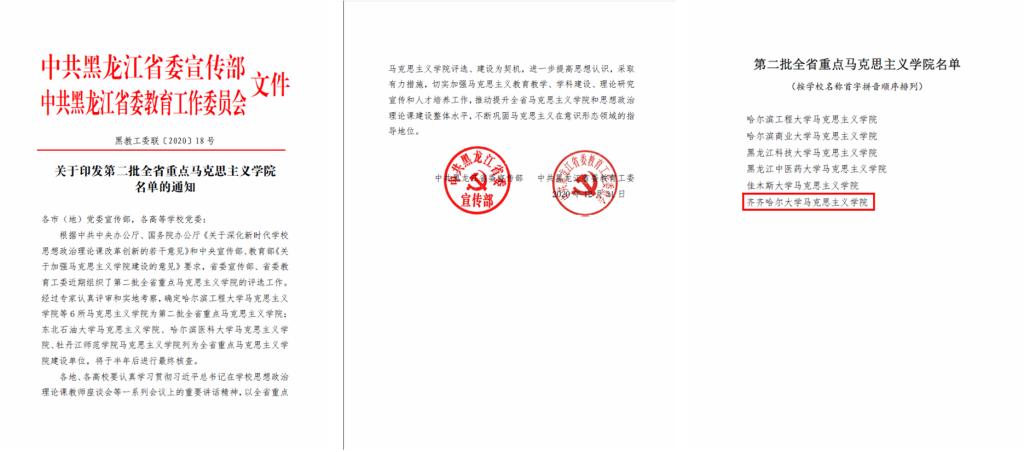 發(fā)布日期:2021-01-06 點(diǎn)擊量:近日,省委宣傳部、省委教育工委聯(lián)合發(fā)文公布了第二批全省重點(diǎn)馬克思主義學(xué)院名單,齊齊哈爾大學(xué)馬克思主義學(xué)院成功入選,目前全省共有10所高校的馬克思主義學(xué)院被確定為全省重點(diǎn)馬克思主義學(xué)院。