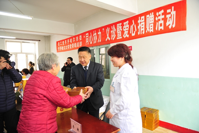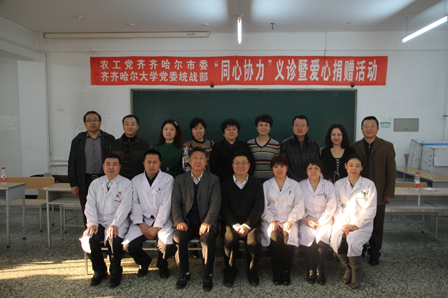 3月20日和3月25日,農(nóng)工黨齊齊哈爾市委和我校黨委統(tǒng)戰(zhàn)部“同心協(xié)力”義診暨愛(ài)心捐贈(zèng)活動(dòng)分別在離退休活動(dòng)中心和中區(qū)11教313室舉行。齊齊哈爾大學(xué)黨委書記李海紅,農(nóng)工黨齊齊哈爾市委主委、齊齊哈爾大學(xué)校長(zhǎng)馬立群,齊齊哈爾大學(xué)常務(wù)副校長(zhǎng)鄭喜群,齊齊哈爾大學(xué)工會(huì)主席李敏義,農(nóng)工黨齊齊哈爾市委副主委、齊齊哈爾市政協(xié)副秘書長(zhǎng)李繼偉,農(nóng)工黨齊齊哈爾市委秘書長(zhǎng)陳曦等參加了“同心協(xié)力”義診暨愛(ài)心捐贈(zèng)有關(guān)活動(dòng),向我校廣大教職員工送上關(guān)懷與溫暖。