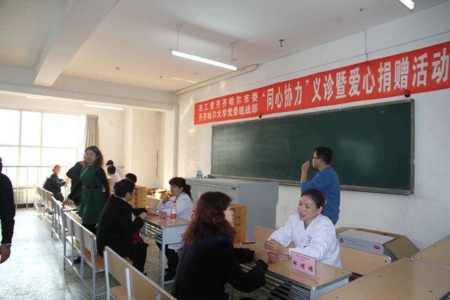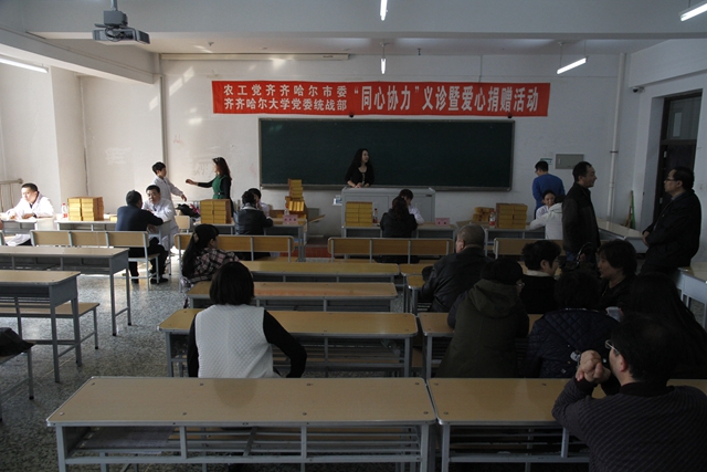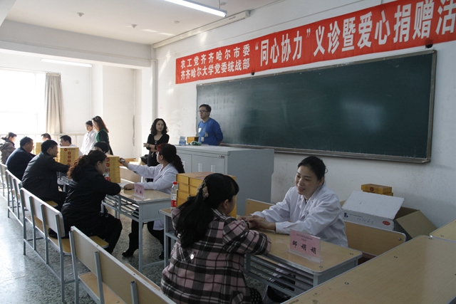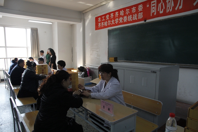 為深入貫徹落實(shí)《省委統(tǒng)戰(zhàn)部關(guān)于在全省統(tǒng)戰(zhàn)系統(tǒng)開展“同心協(xié)力活動(dòng)”的意見(jiàn)》、《省委高校工委關(guān)于在全省高校統(tǒng)戰(zhàn)系統(tǒng)開展“同心協(xié)力活動(dòng)”的方案》和《齊齊哈爾大學(xué)統(tǒng)戰(zhàn)系統(tǒng)開展“同心協(xié)力活動(dòng)”方案》精神,充分發(fā)揮統(tǒng)一戰(zhàn)線的優(yōu)勢(shì)和作用,農(nóng)工黨齊齊哈爾市委和我校黨委統(tǒng)戰(zhàn)部聯(lián)合舉辦了“同心協(xié)力”義診暨愛(ài)心捐贈(zèng)活動(dòng),分別邀請(qǐng)市第一醫(yī)院、中醫(yī)醫(yī)院等專家為廣大教職工義診,并根據(jù)身體診脈結(jié)果向教職工贈(zèng)送愛(ài)心藥品。