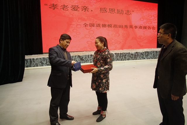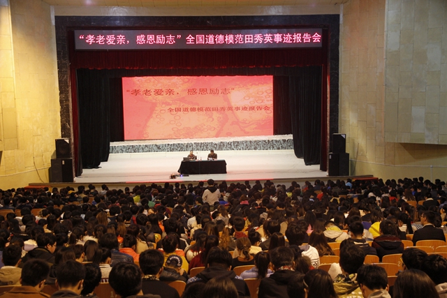 為弘揚(yáng)中華傳統(tǒng)美德,充分發(fā)揮道德模范的榜樣作用,促進(jìn)廣大學(xué)子踐行社會主義核心價值觀,4月9日,我校特舉行“孝老愛親,感恩勵志”田秀英事跡報告會,全國道德模范、“笑對人生的好母親”田秀英應(yīng)邀在文化宮為我校師生獻(xiàn)上了一道題為《笑對人生》的道德文化大餐。