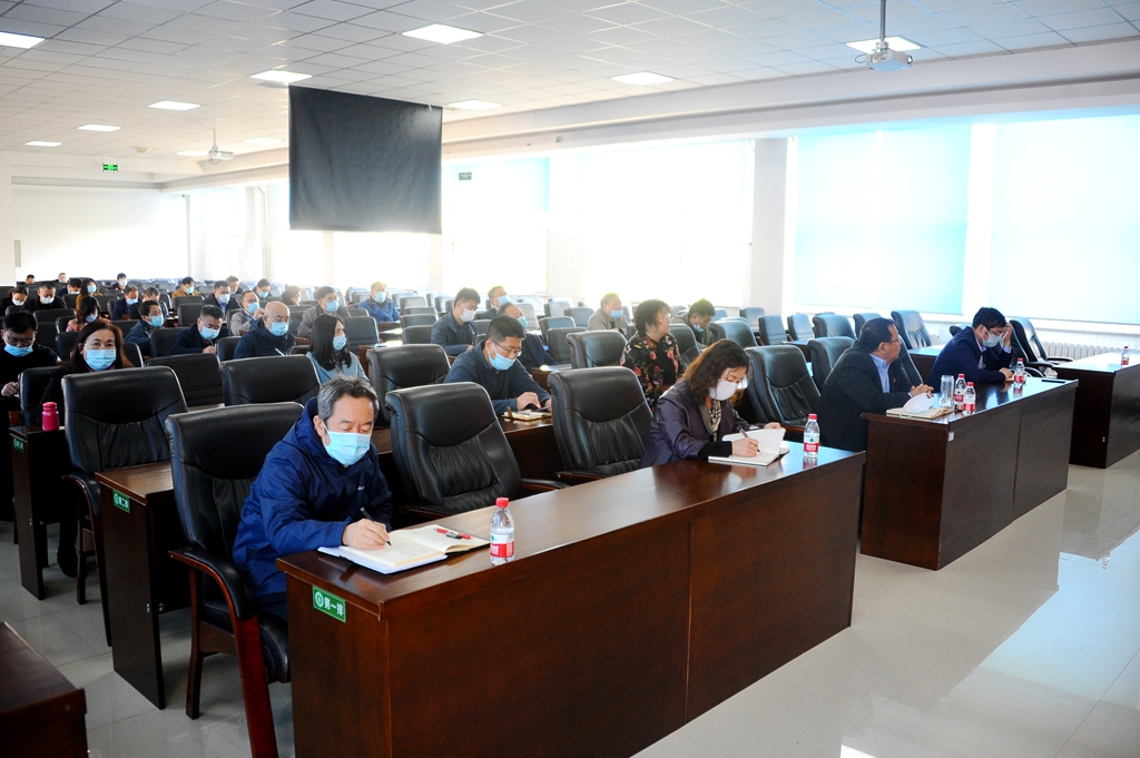 我校校長董玉庭、校黨委副書記齊宏偉、校黨委副書記張文治、副校長呂厚均和相關職能部門負責人、各二級教學單位黨政主要負責人在求實樓5樓會議室通過視頻會議的方式參會。