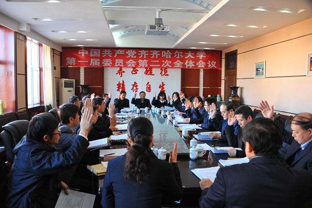 為深入學(xué)習(xí)貫徹落實(shí)黨的十八大、十八屆三中、四中全會(huì)精神,貫徹落實(shí)學(xué)校第一次黨代會(huì)精神,認(rèn)真總結(jié)學(xué)校一屆一次黨代會(huì)以來的工作,進(jìn)一步認(rèn)清形勢(shì),統(tǒng)一思想,振奮精神,凝聚力量,奮力推動(dòng)我校高水平大學(xué)建設(shè),經(jīng)學(xué)校黨委研究,決定召開中國共產(chǎn)黨齊齊哈爾大學(xué)第一屆委員會(huì)第二次全體會(huì)議。
