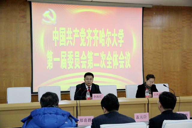 受中共齊齊哈爾大學(xué)常委會(huì)委托,學(xué)校黨委書記李海紅代表學(xué)校黨委常委會(huì)向全委會(huì)作了題為《全面推進(jìn)高水平大學(xué)建設(shè) 努力辦好人民滿意大學(xué)》的工作報(bào)告。