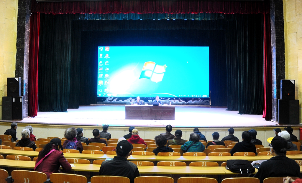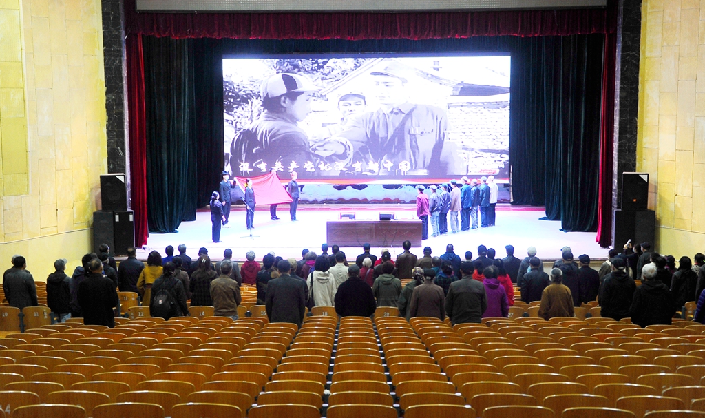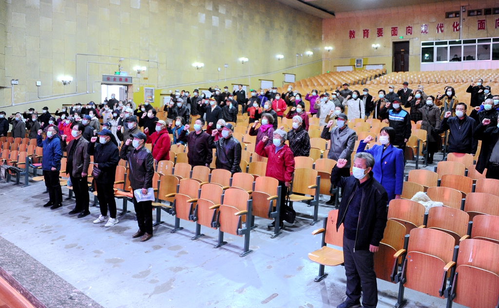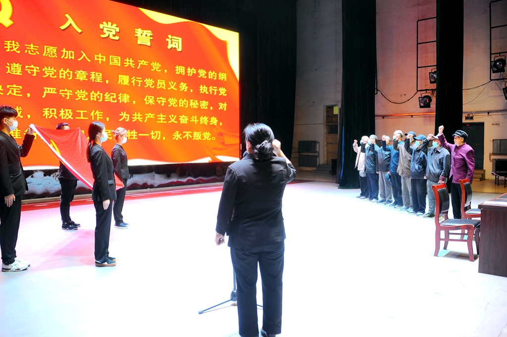 講座結束后,參加活動的老領導、建國前老黨員和黨支部書記代表上臺,和全體離退休老黨員們一起重溫了入黨誓詞。