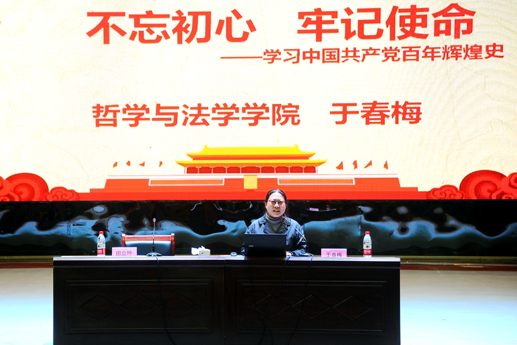 活動中,哲學與法學學院黨委書記于春梅教授以《不忘初心、牢記使命——學習中國共產(chǎn)黨百年輝煌史》為題,從學好黨史具有重要的現(xiàn)實意義、把握好百年黨史的歷史發(fā)展脈絡、中國共產(chǎn)黨百年歷程的深刻啟示等三個方面,為離退休老黨員們作了一場精彩生動的講座。