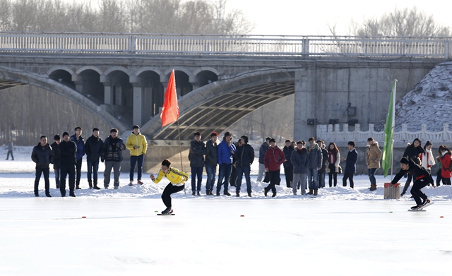 本屆冰上運動會單項比賽采用國家體育總局冬運中心審定的最新的《速度滑冰競賽規(guī)則》,設(shè)置了單項比賽“男子500米、女子500米速滑”競賽項目,設(shè)置了“纖夫拉爬犁50米”、“定時快撿小布球20個”等游戲項目,吸引了眾多同學(xué)的熱情參與,充分體現(xiàn)了冰上運動會的群體性。