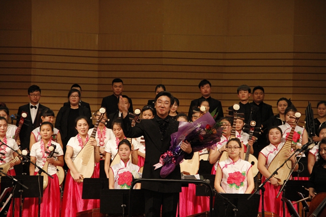 演出結(jié)束時(shí),樂團(tuán)在演奏完原定曲目后,應(yīng)現(xiàn)場觀眾的熱誠邀請(qǐng),交響樂團(tuán)師生們?cè)俅蔚桥_(tái),演唱師生們耳熟能詳?shù)那俊顿愸R》,精湛的演奏又一次掀起了交響音樂會(huì)高潮。廣大觀眾被民族交響樂的魅力和情感深深打動(dòng),為民族交響樂的力量和精神所震撼。同時(shí),民族交響樂的高雅藝術(shù)得到更加廣泛的傳播、普及和弘揚(yáng),為培育和踐行社會(huì)主義核心價(jià)值觀傳播了正能量。