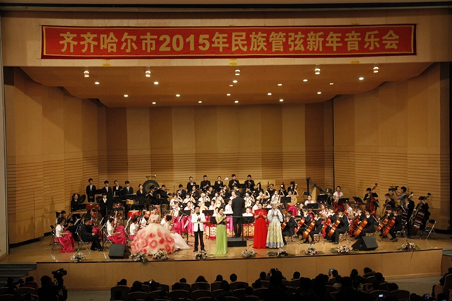 環(huán)湖大學(xué)回響高山流水之音,文化校園沐浴陽春白雪芬芳。2015民族管弦新年音樂會(huì)由齊齊哈爾大學(xué)主辦,由音樂與舞蹈學(xué)院承辦,齊齊哈爾大學(xué)民族交響樂團(tuán)演奏。美妙的音樂、感人的歌聲,傳遞著新年的誠摯問候,為廣大師生和鶴城人民獻(xiàn)上了民族音樂藝術(shù)的文化盛宴。全體演職師生以汗水和心血澆灌的高雅藝術(shù)之花璀璨綻放。