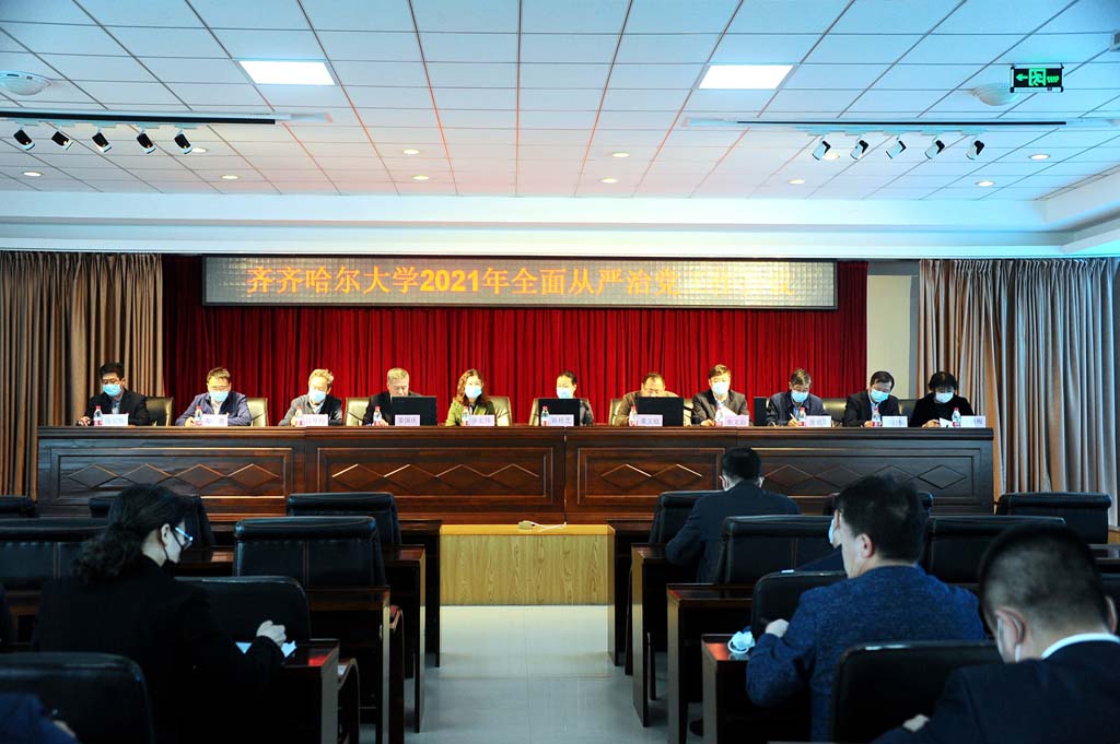 她代表學校黨委就做好2021年學校全面從嚴治黨工作從六個方面進行全面部署:一要突出政治引領(lǐng),堅決做到“兩個維護”。強化政治領(lǐng)導(dǎo),堅持和加強黨對學校工作的全面領(lǐng)導(dǎo)。突出政治監(jiān)督,加強對黨史學習教育、疫情防控、民主生活會等開展政治監(jiān)督。啟動校內(nèi)巡察工作,推動全面從嚴治黨向二級黨組織有效延伸。二要強化黨的創(chuàng)新理論武裝,擰緊理想信念總開關(guān)。從嚴從實抓好黨史學習教育,奮力譜寫齊大高質(zhì)量發(fā)展新篇章。全力把牢意識形態(tài)陣地,加強“三微一端”等網(wǎng)絡(luò)陣地建設(shè)和管理,守牢網(wǎng)絡(luò)輿情底線。三要加強黨的組織建設(shè),著力打造高素質(zhì)干部隊伍。嚴抓基層黨建工作,指導(dǎo)二級黨組織做好換屆選舉工作,以嚴肅的紀律確保換屆風清氣正。建設(shè)忠誠干凈擔當?shù)母咚刭|(zhì)干部隊伍,嚴格干部選任程序和日常管理監(jiān)督,強化紀律教育和事前監(jiān)督。四要鍥而不舍深化作風建設(shè),持續(xù)開展糾“四風”樹新風。開展深化作風整頓優(yōu)化育人環(huán)境工作,持續(xù)抓好落實中央八項規(guī)定及其實施細則精神的監(jiān)督,毫不松懈糾治“四風”。加大對違反師德師風問題的懲處力度,以高壓態(tài)勢依規(guī)依紀嚴肅懲治師德失范問題。五要堅持標本兼治,一體推進不敢腐、不能腐、不想腐。強化“不敢腐”的震懾,始終保持懲治腐敗高壓態(tài)勢。扎緊“不能腐”的籠子,推進廉政風險防控體系建設(shè)。增強“不想腐”的自覺,努力營造崇廉尚潔文化氛圍。六要壓實管黨治黨政治責任,推進全面從嚴治黨任務(wù)落實落靠。全面落實主體責任,黨組織書記要扛起“第一責任人”責任,班子的其他成員要履行“一崗雙責”責任。切實強化監(jiān)督責任,學校紀檢監(jiān)察機構(gòu)要認真履行監(jiān)督基本職責、第一職責,紀檢監(jiān)察干部要自覺做到忠誠干凈擔當。