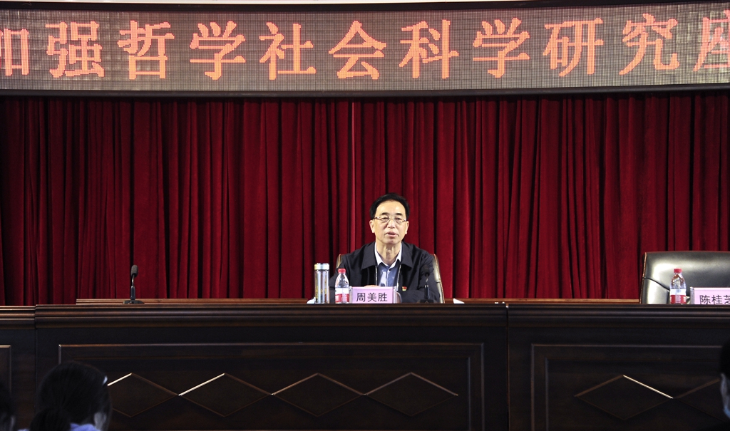 6月2日下午,學(xué)校在求實(shí)樓510會(huì)議室召開(kāi)加強(qiáng)哲學(xué)社會(huì)科學(xué)研究座談會(huì),省委宣傳部二級(jí)巡視員、省哲學(xué)社會(huì)科學(xué)工作辦公室主任周美勝,我校黨委書(shū)記陳桂芝、副校長(zhǎng)呂厚均出席座談會(huì),科研處及各相關(guān)學(xué)院教師參加了座談會(huì)。會(huì)議由陳桂芝主持。