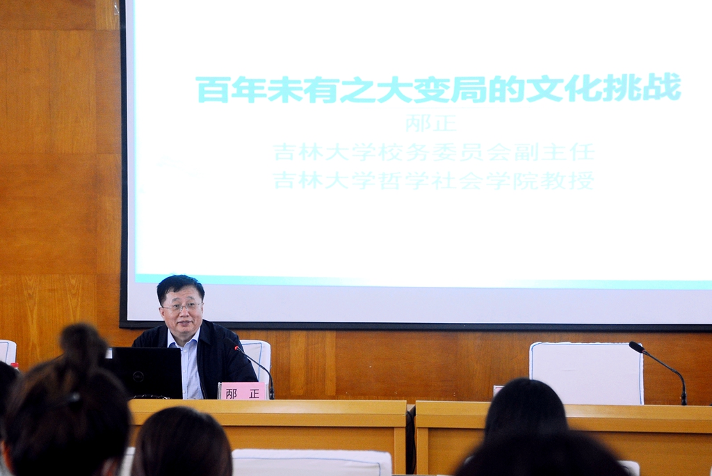 會(huì)上,邴正教授以《百年未有之大變局的文化挑戰(zhàn)》為題,從世界面臨百年未有之大變局,我國(guó)發(fā)展仍處于并將長(zhǎng)期處于重要戰(zhàn)略機(jī)遇期,這一習(xí)近平總書(shū)記對(duì)世界發(fā)展大勢(shì)和中國(guó)自身發(fā)展作出的重大判斷切入,深入闡釋了世界百年未有之大變局的理論內(nèi)涵和歷史演進(jìn)趨勢(shì)。并介紹了中西方價(jià)值觀模式的比較,馬克思主義與中國(guó)優(yōu)秀傳統(tǒng)文化相結(jié)合等方面內(nèi)容,他指出,深刻認(rèn)識(shí)到世界大變局與中國(guó)大發(fā)展之間的歷史性交匯,有助于我們?cè)谑澜绱笞兙种赂镁S護(hù)和延長(zhǎng)中國(guó)發(fā)展的重要戰(zhàn)略機(jī)遇期,更好應(yīng)對(duì)世界大發(fā)展大變化大調(diào)整背景下中國(guó)面臨的外部風(fēng)險(xiǎn)和挑戰(zhàn)。