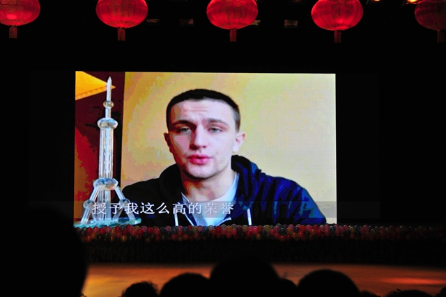 伊戈爾前些天因事去了上海,得知獲獎的消息后,他很激動,特意用錄了一段視頻發(fā)給組委會。頒獎儀式上,學校用大屏幕播放了伊戈爾的講話視頻,向?qū)W校致謝。