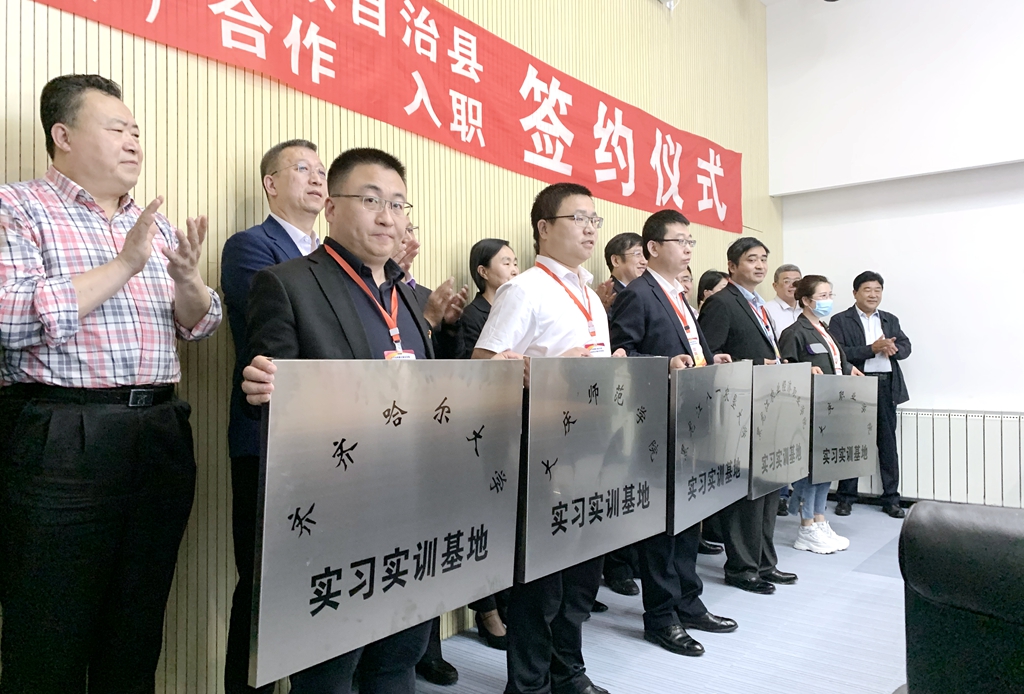 為貫徹落實(shí)黨中央、國務(wù)院“六穩(wěn)”“六?!睕Q策部署,進(jìn)一步加強(qiáng)校企合作,鞏固和拓展省內(nèi)就業(yè)平臺(tái),服務(wù)地方經(jīng)濟(jì)發(fā)展,助力我校畢業(yè)生充分高質(zhì)量留省就業(yè),6月4日上午,我校參加了杜爾伯特蒙古族自治縣與八所高??h校共建合作的簽約儀式。杜爾伯特蒙古族自治縣縣委書記張劍出席儀式并致辭,縣委副書記、縣長張家文在儀式上介紹相關(guān)情況,縣委常委、副縣長寧峰主持儀式。我校黨委副書記張文治出席儀式,招生就業(yè)處處長楊國志及相關(guān)人員參加儀式。