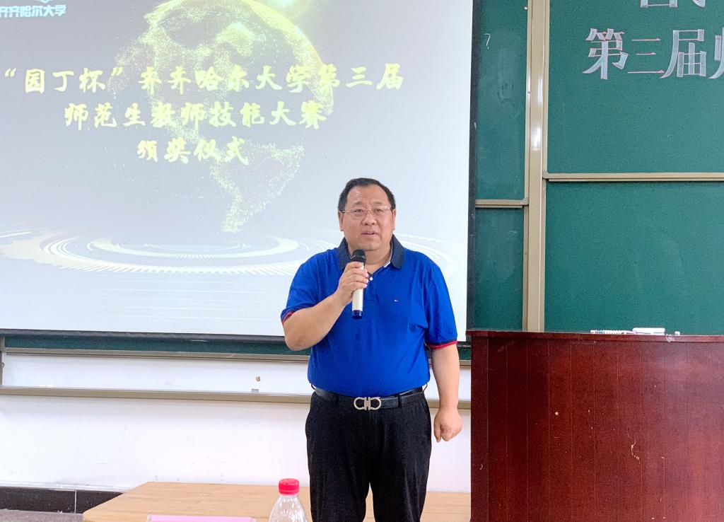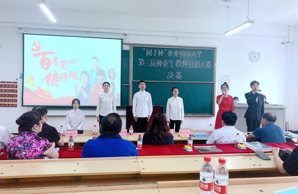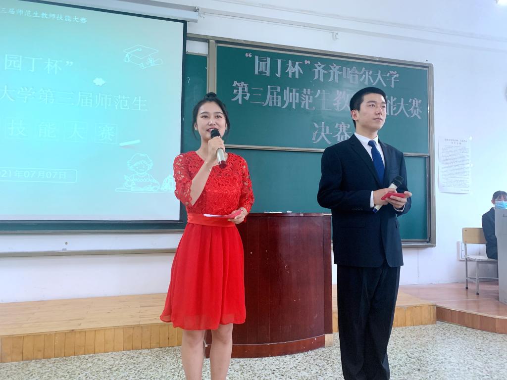 為切實(shí)加強(qiáng)師范類專業(yè)建設(shè),強(qiáng)化師范生教學(xué)技能培養(yǎng),努力實(shí)現(xiàn)“一踐行三學(xué)會(huì)”的人才培養(yǎng)目標(biāo),7月7日下午,由教務(wù)處、校團(tuán)委主辦,教師教育學(xué)院承辦的“園丁杯”齊齊哈爾大學(xué)第三屆師范生教師技能大賽決賽在25教階教202舉行。大賽決賽由教師教育學(xué)院學(xué)生張欲東和楊雅琪主持。